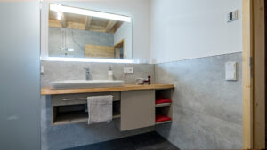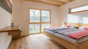 Die Wohnung „Dollenbergblick“ ist mit ihren 2 Schlafzimmern geeignet für eine Familie oder 2 Paare. Ein großzügiges Bad mit bodengleicher Dusche und Panoramaspiegel sorgen für das Mehr an Komfort.