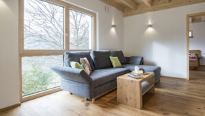 Unsere Ferienwohnung „Dollenberg“ begrüßt Sie mit hellem freundlichem Ambiente. Bei der Einrichtung haben wir ausschließlich Naturholz aus heimischen Hölzern und Naturfarben verwendet. Und das spürt man schon beim Eintreten. Ein gesundes Wohn- und Raumklima ist der Garant für beste Erholung.