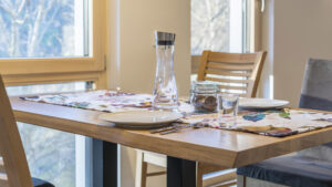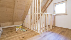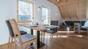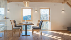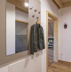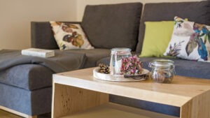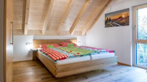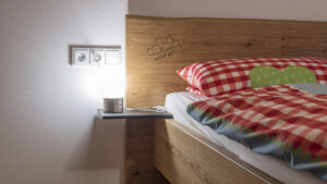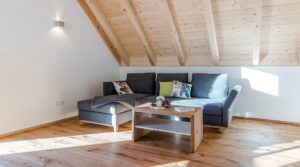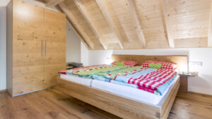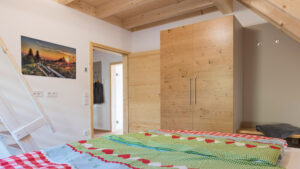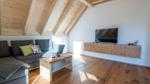 Auch die Ferienwohnung „Himmelsblick“ ist eingerichtet mit Massivholzmöbeln und es wurden ausschließlich Naturfarben, Naturharzöle verwendet.