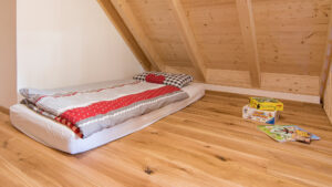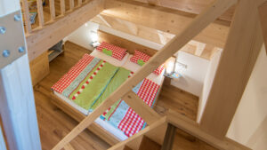 Besonders gemütlich ist der Schlafplatz auf der Galerie, für größere Kinder ein Hauch von Abenteuer.